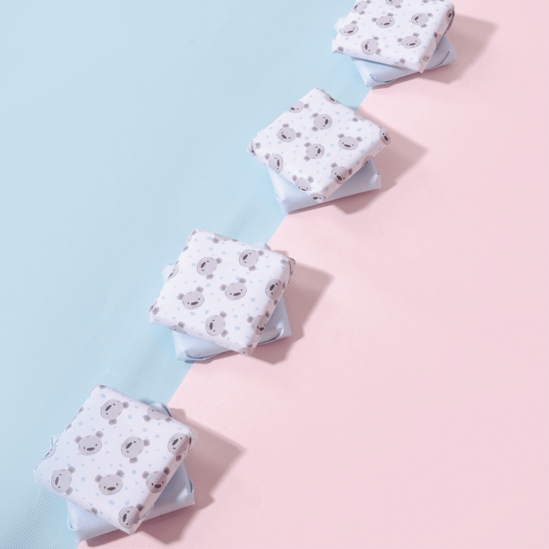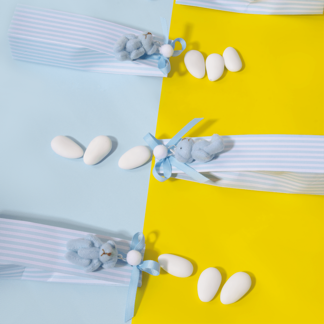 A blue leather basket holding 700 grams of 100% premium Belgian chocolate and two ceramic teddy coin banks