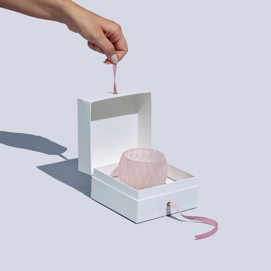 USD60A gift set including a frosted glass incense burner and a matching candle in a customized gift box. -