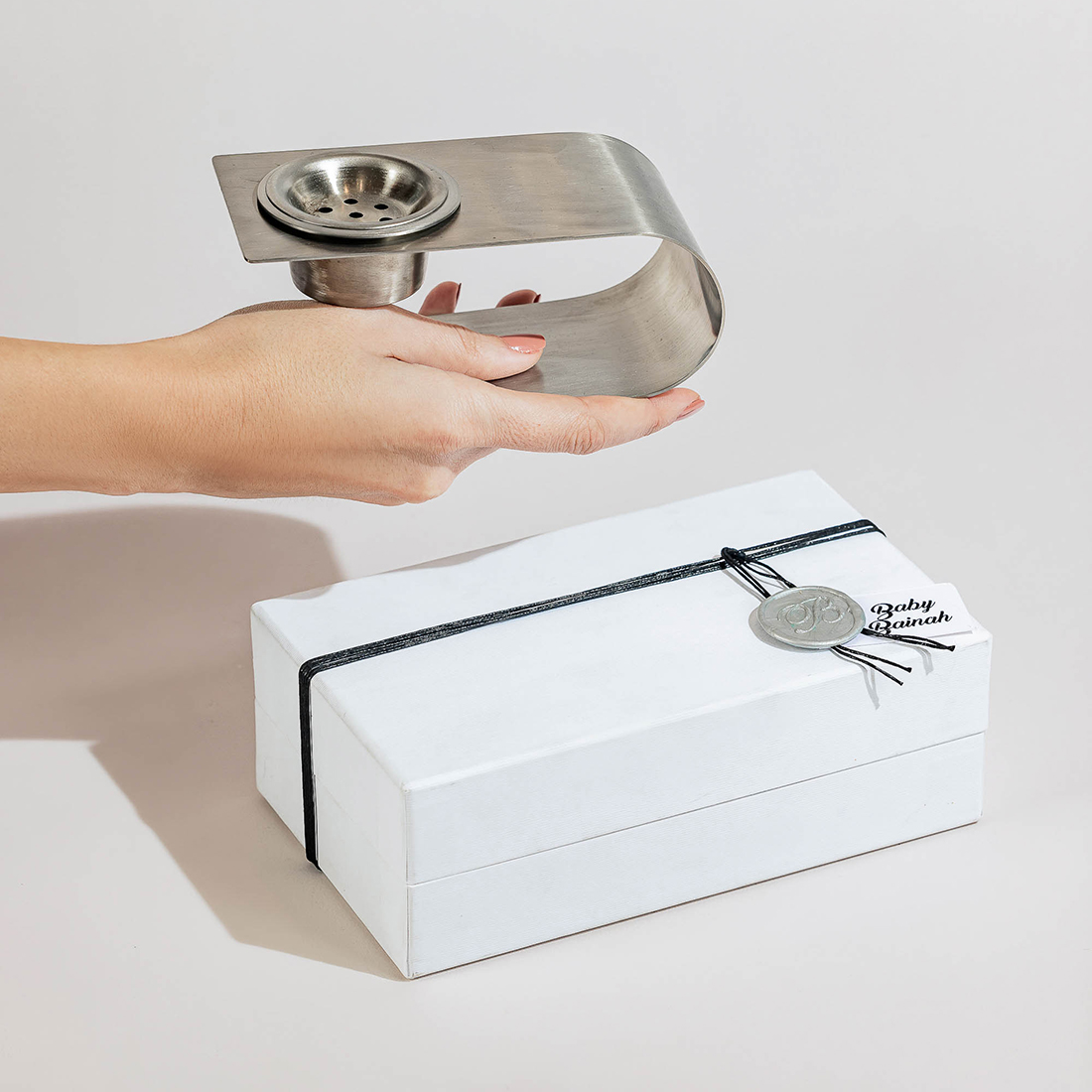 USD60A gift set including a frosted glass incense burner and a matching candle in a customized gift box. -