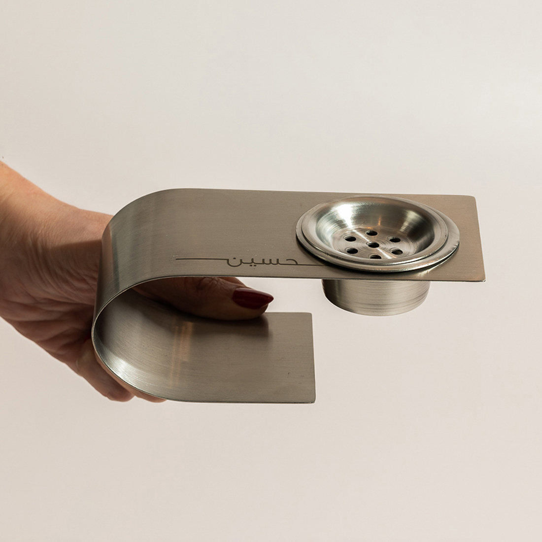 USD55A leather pouch holding a leather holy Quran and an engraved bookmark with charms, as well as the babies' names. -