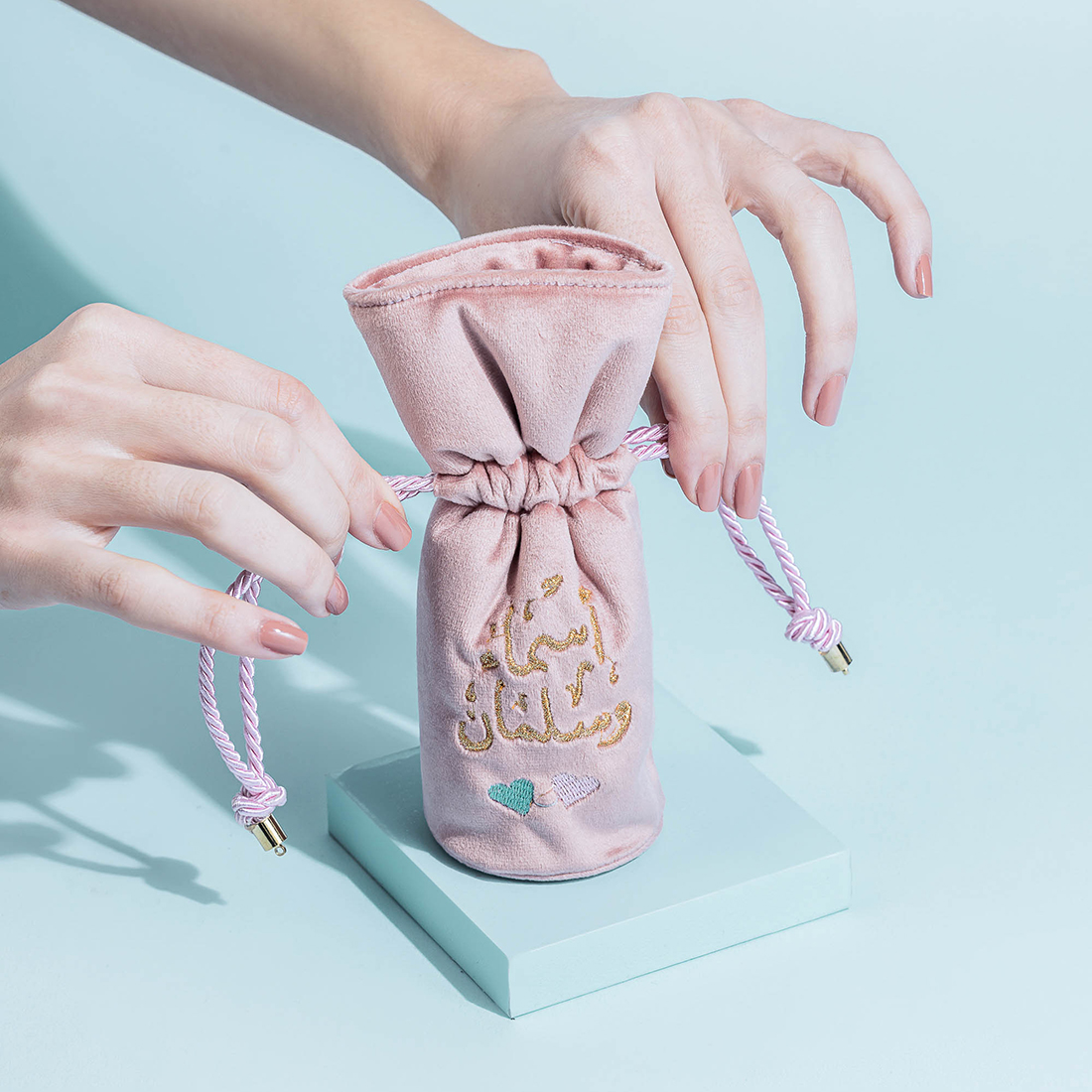 USD10A fabric compact mirror with emboirdery and a personalized chocolate piece. -