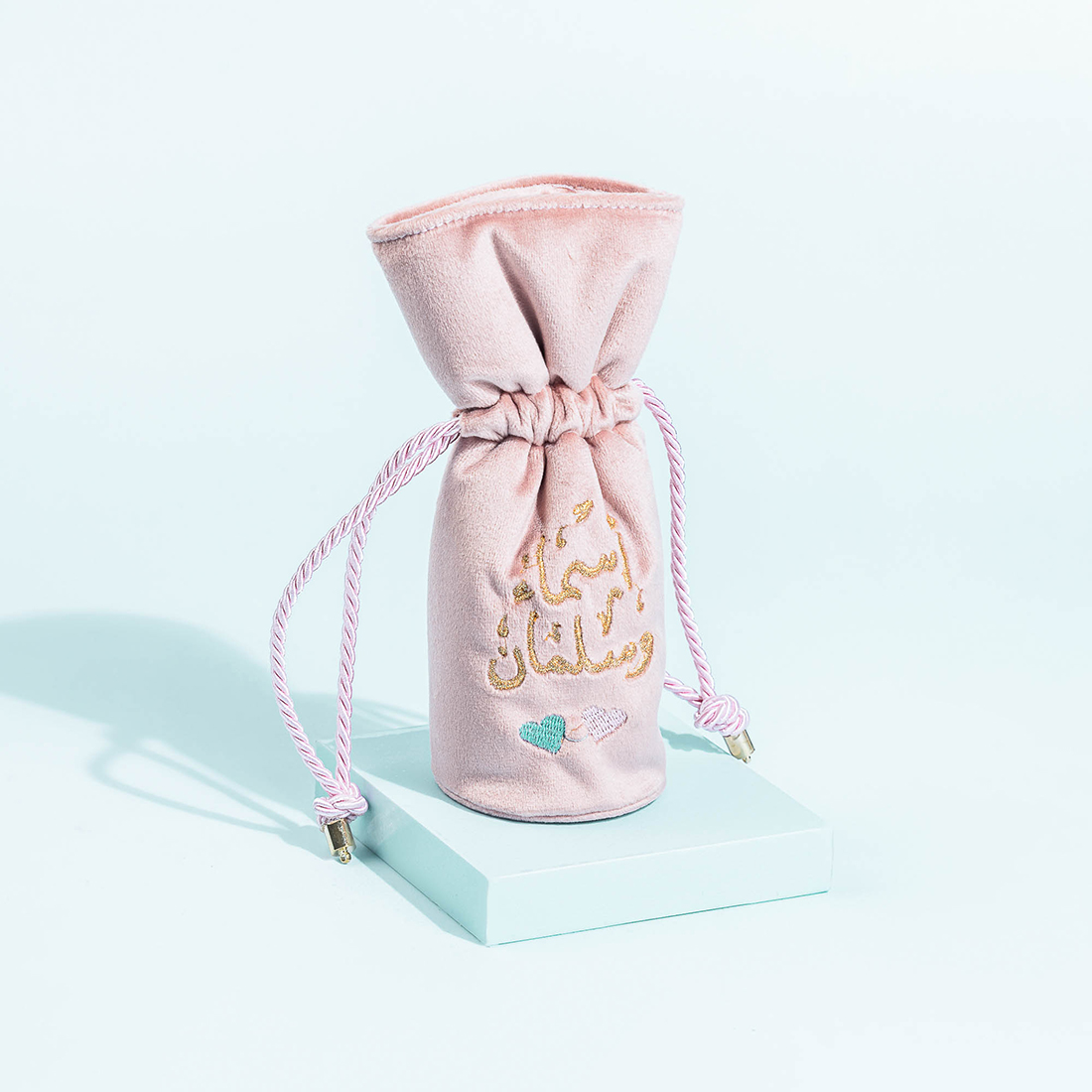 USD55A leather pouch holding a leather holy Quran and an engraved bookmark with charms, as well as the babies' names. -