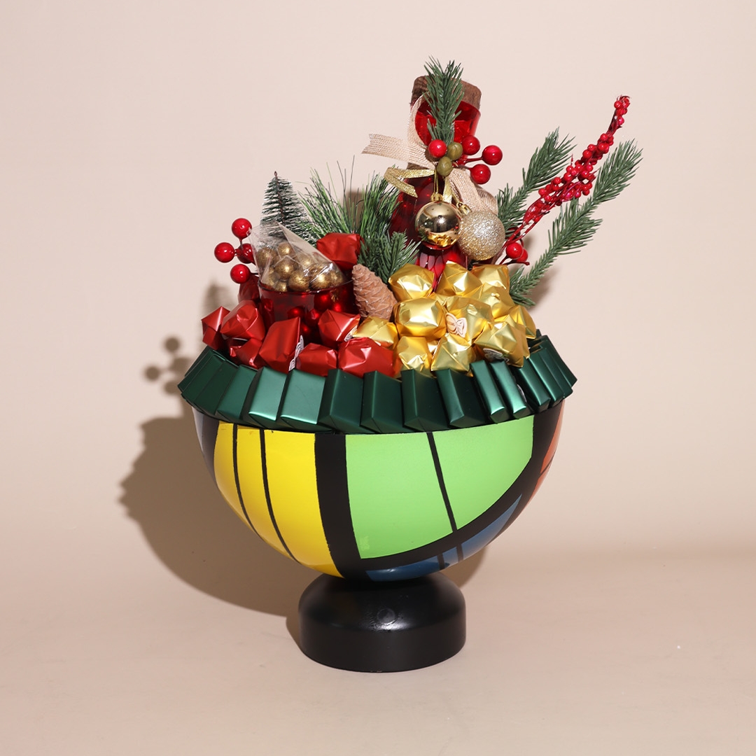 USD150A hand-painted, metallic footed bowl filled with 1.2 KG of 100% premium Belgian chocolate. -
