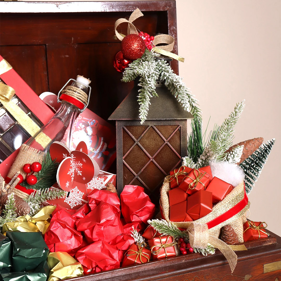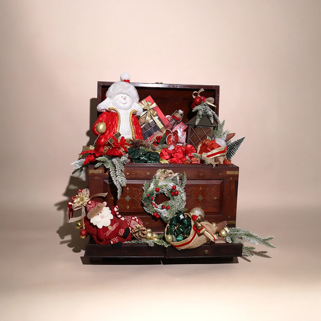 A festive, wooden chest filled with 3.5 KG of 100% premium Belgian chocolate, perfect for an extravagant Christmas celebration.