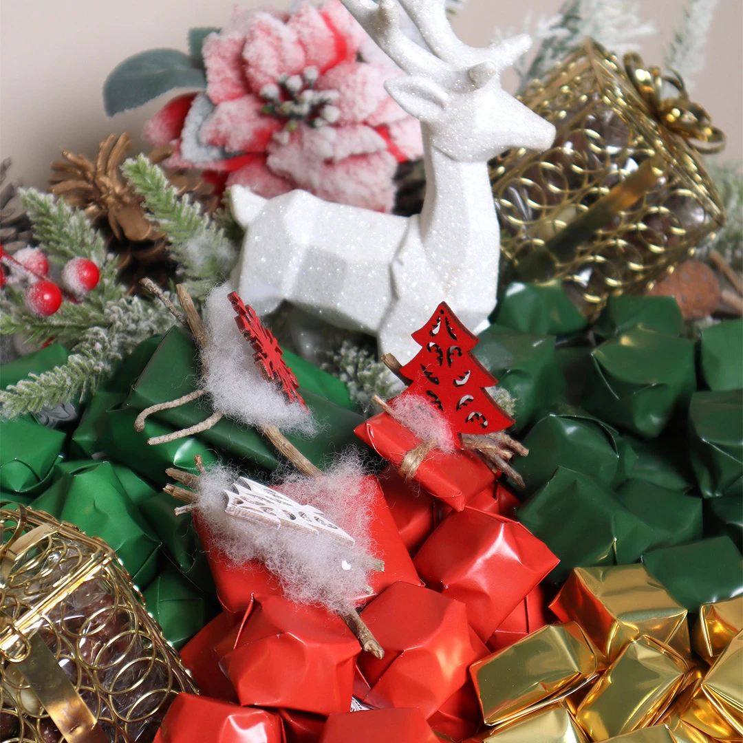 USD90A festive 1 KG chocolate arrangement, available in silver or gold, decorated with Christmas accents and perfect for holiday gifting. -