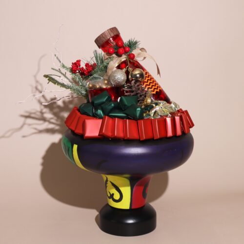 USD50 – USD80Price range: USD50 through USD80A festive golden glass vase filled with 100% premium Belgian chocolate and decorated with Christmas accents. -