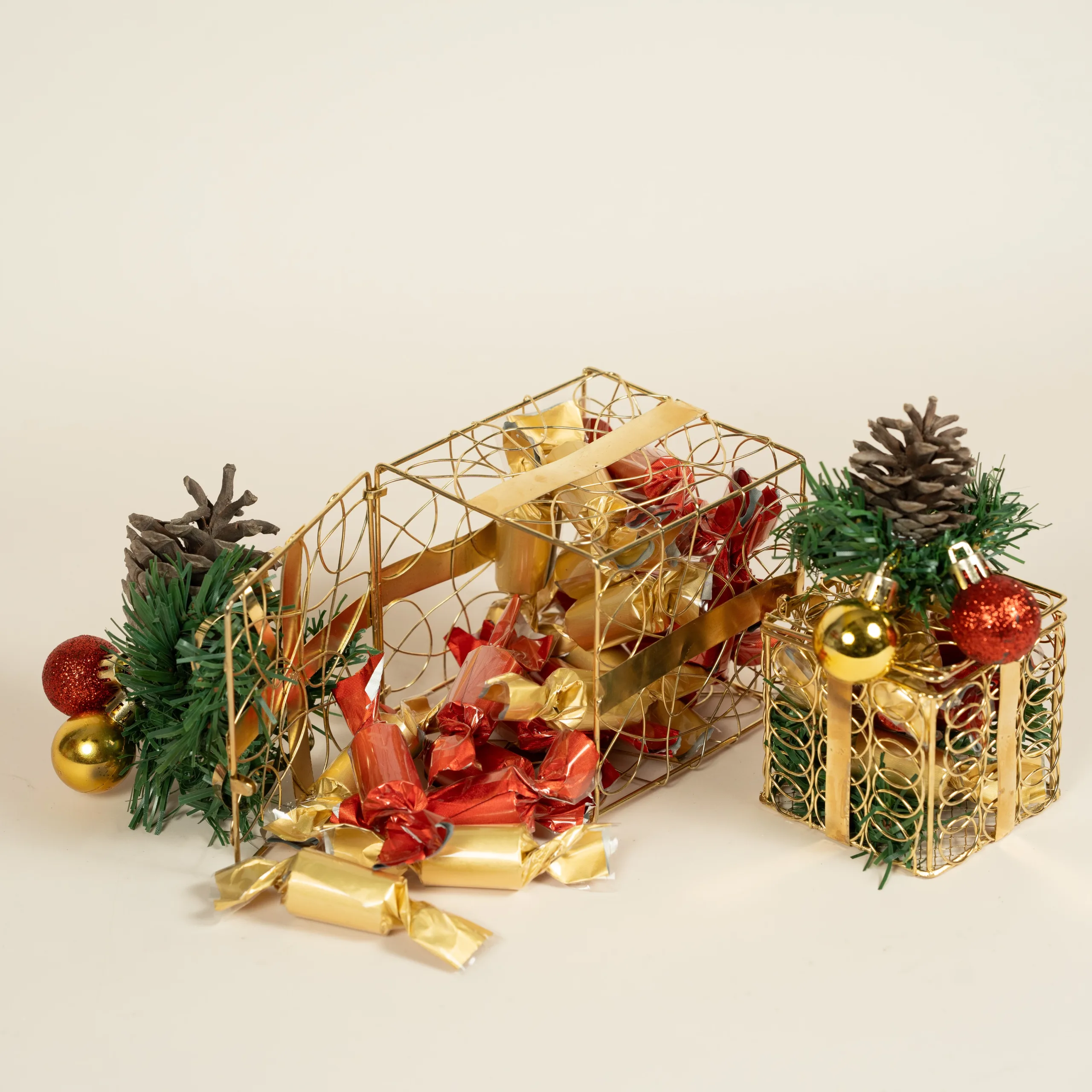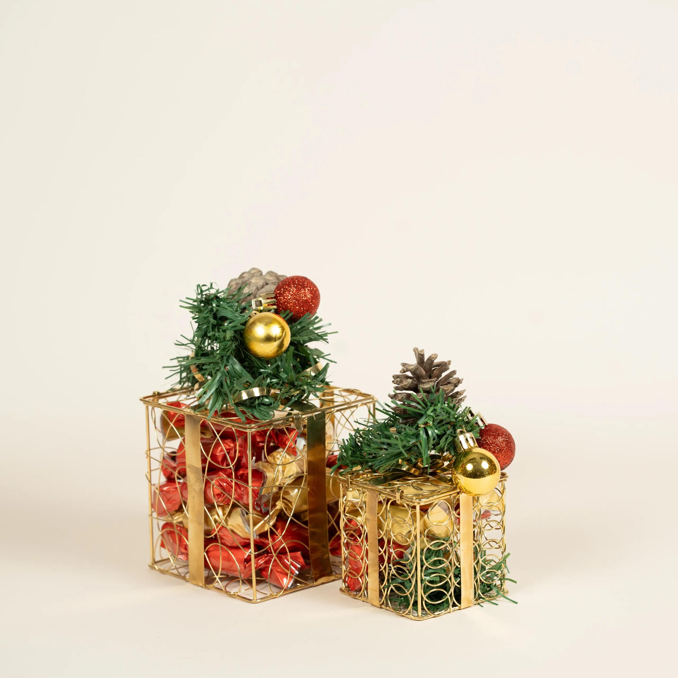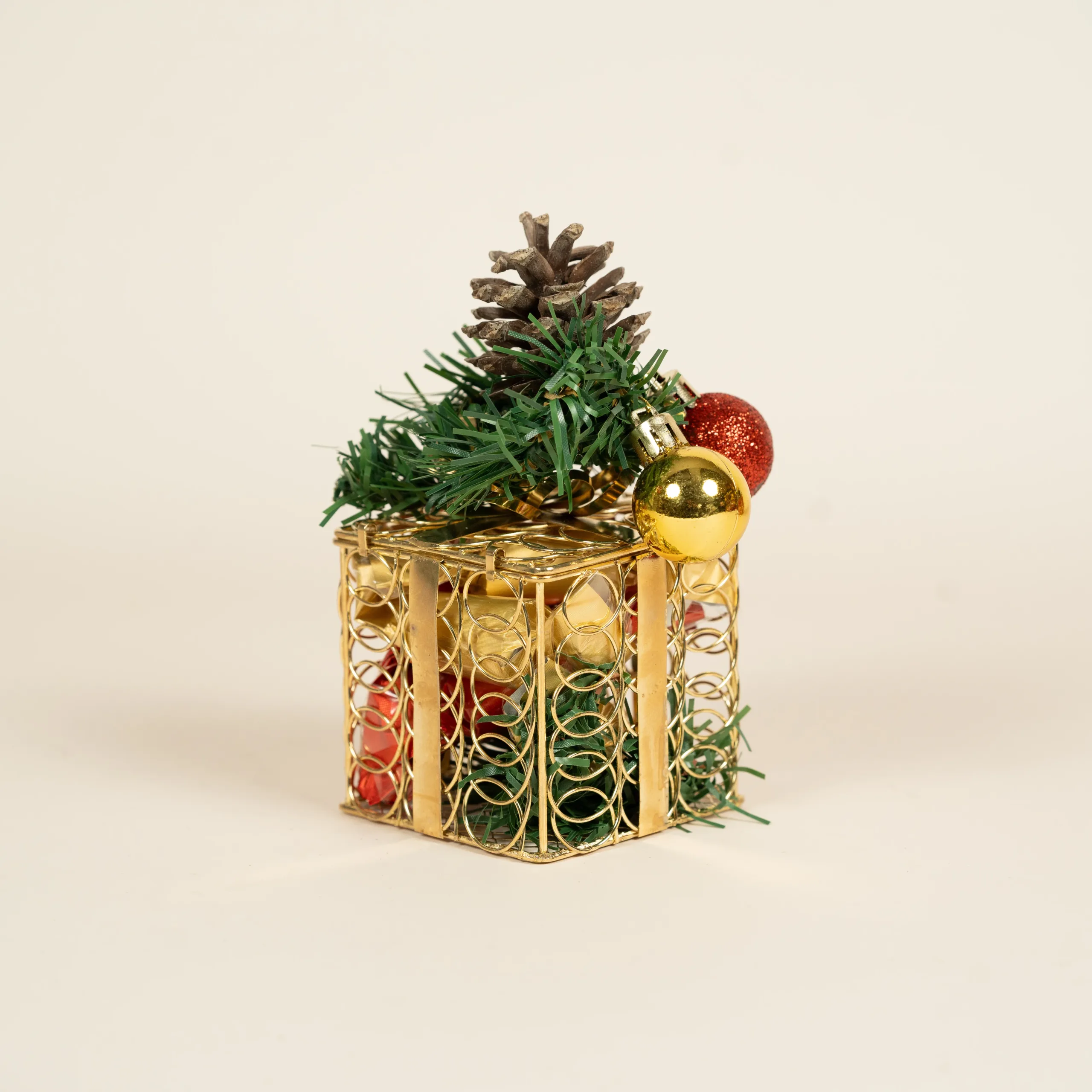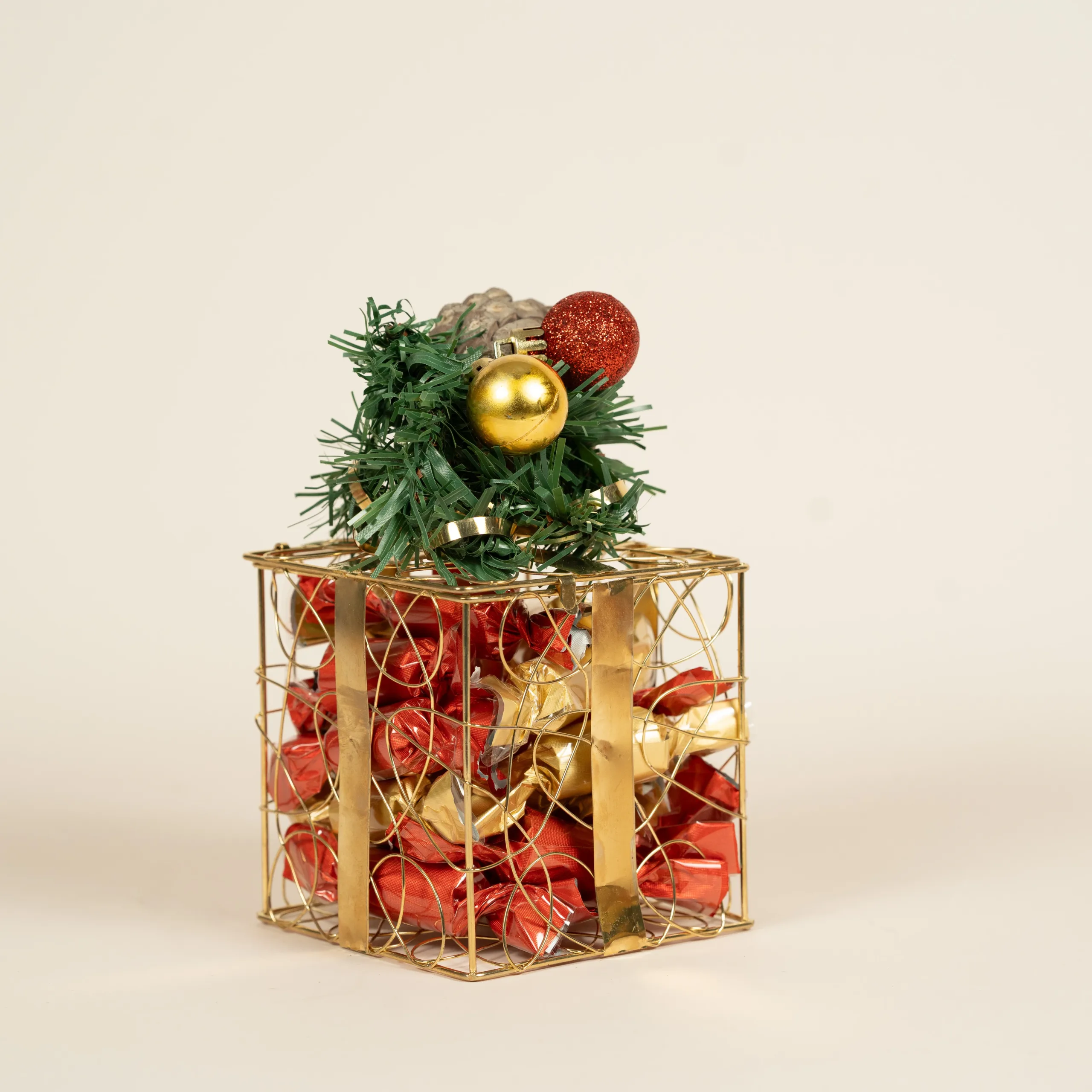USD50 – USD80Price range: USD50 through USD80A festive golden glass vase filled with 100% premium Belgian chocolate and decorated with Christmas accents. -