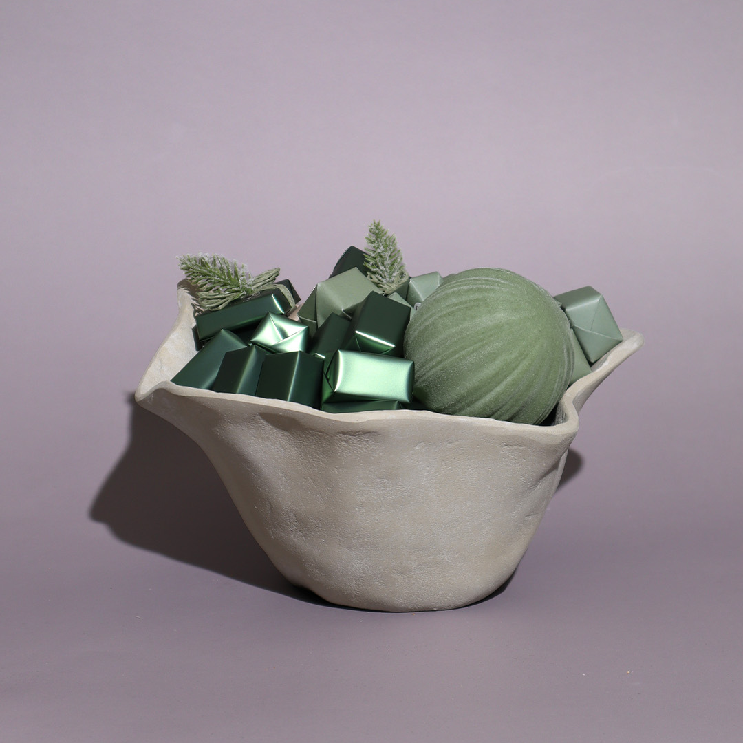 USD135A medium, porcelain bowl with a travertine feel filled with 1.1 KG of 100% premium Belgian chocolate. -