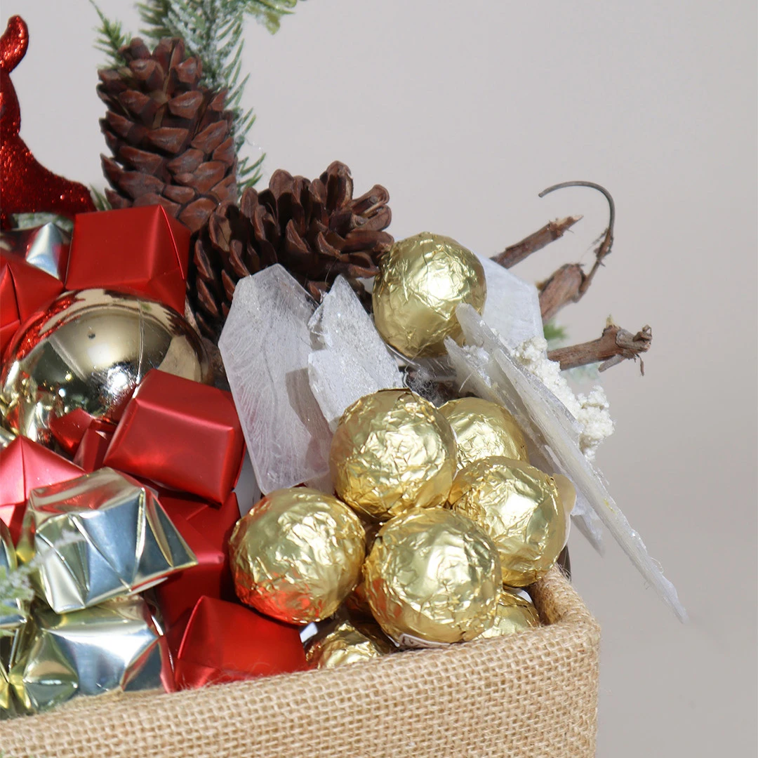 USD90A festive 1 KG chocolate arrangement, available in silver or gold, decorated with Christmas accents and perfect for holiday gifting. -