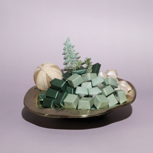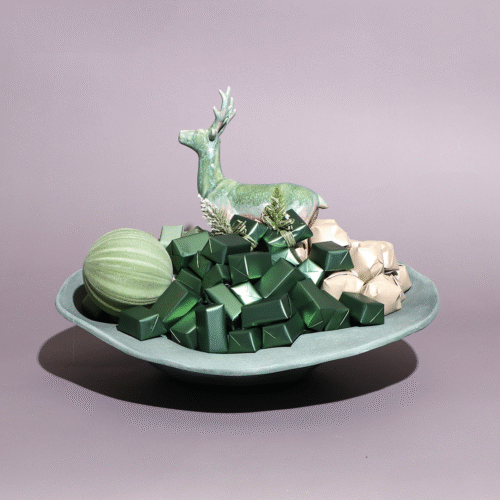 USD30 – USD50Price range: USD30 through USD50A curvy glass plate filled with 100% premium Belgian chocolate, complemented by Christmas decorations and festive accents. -