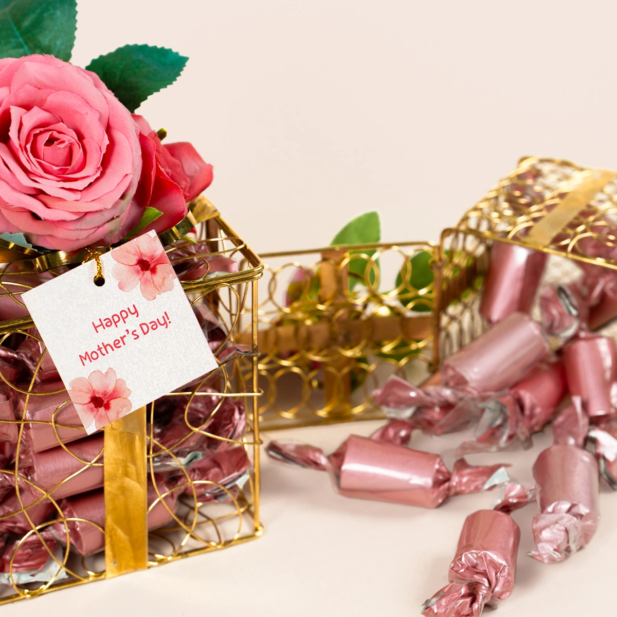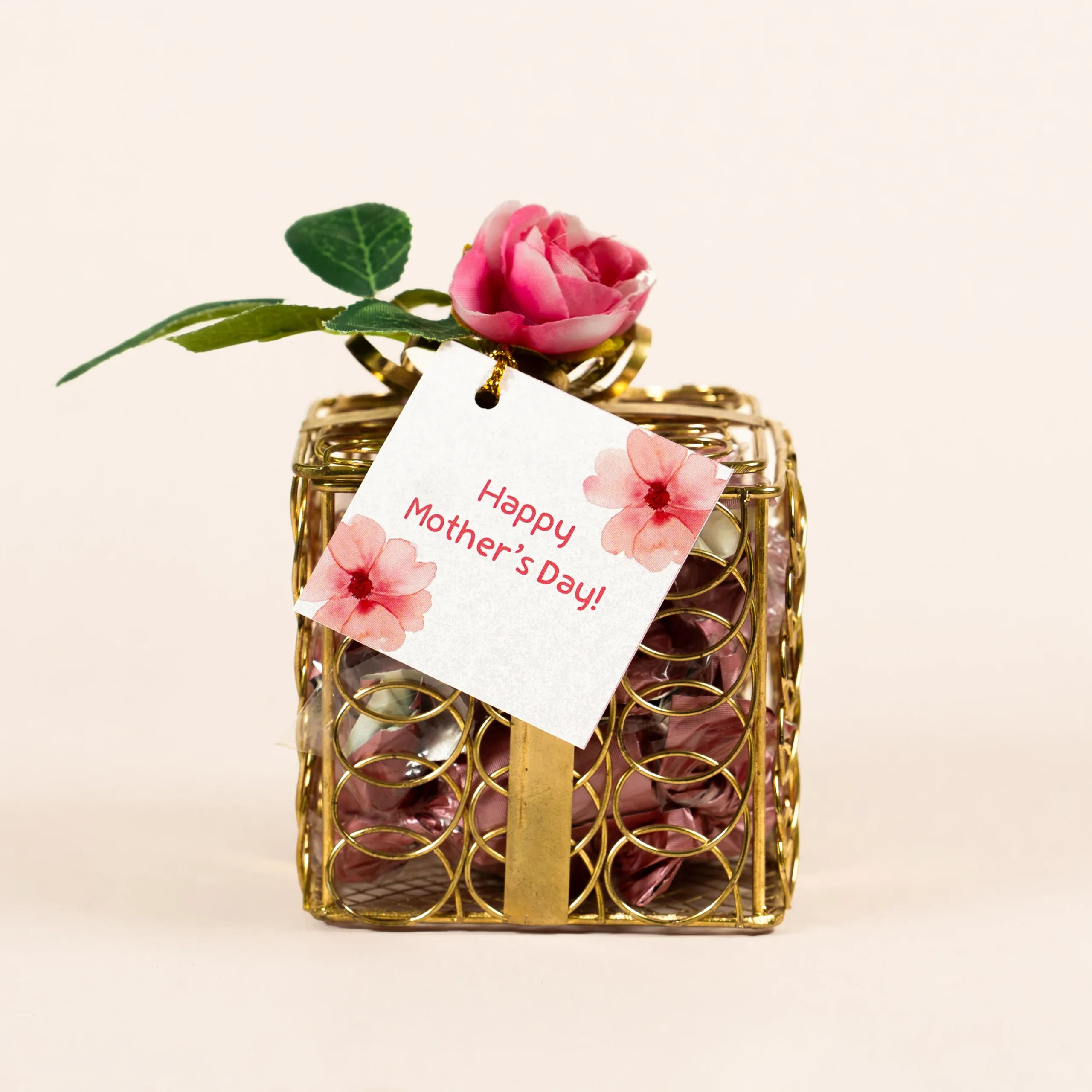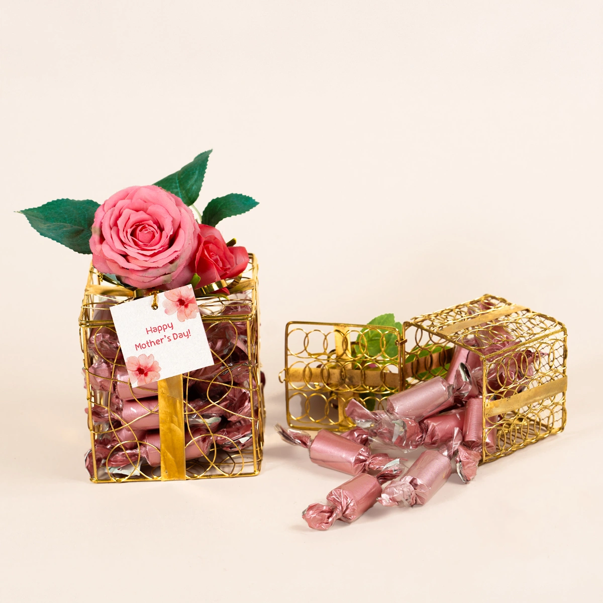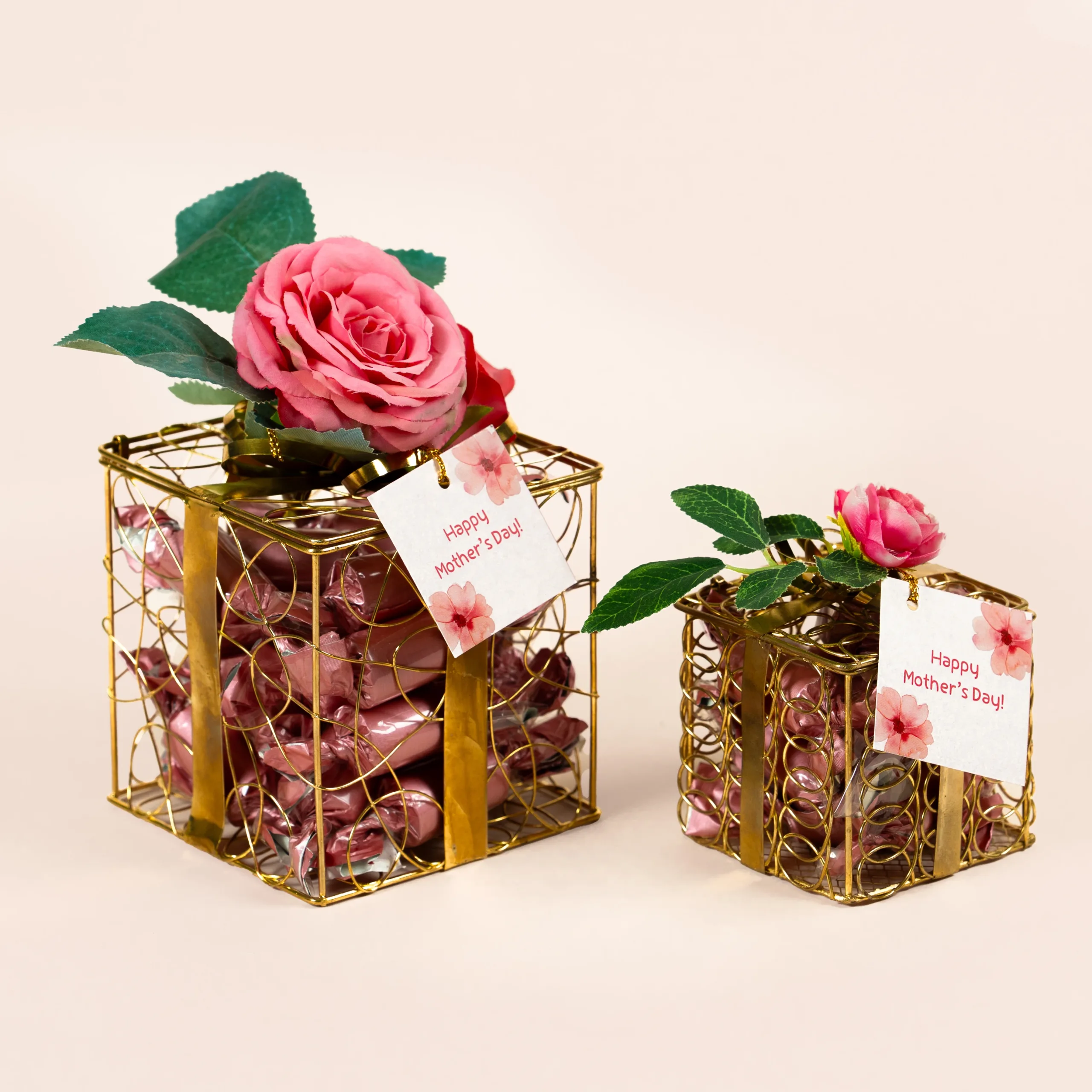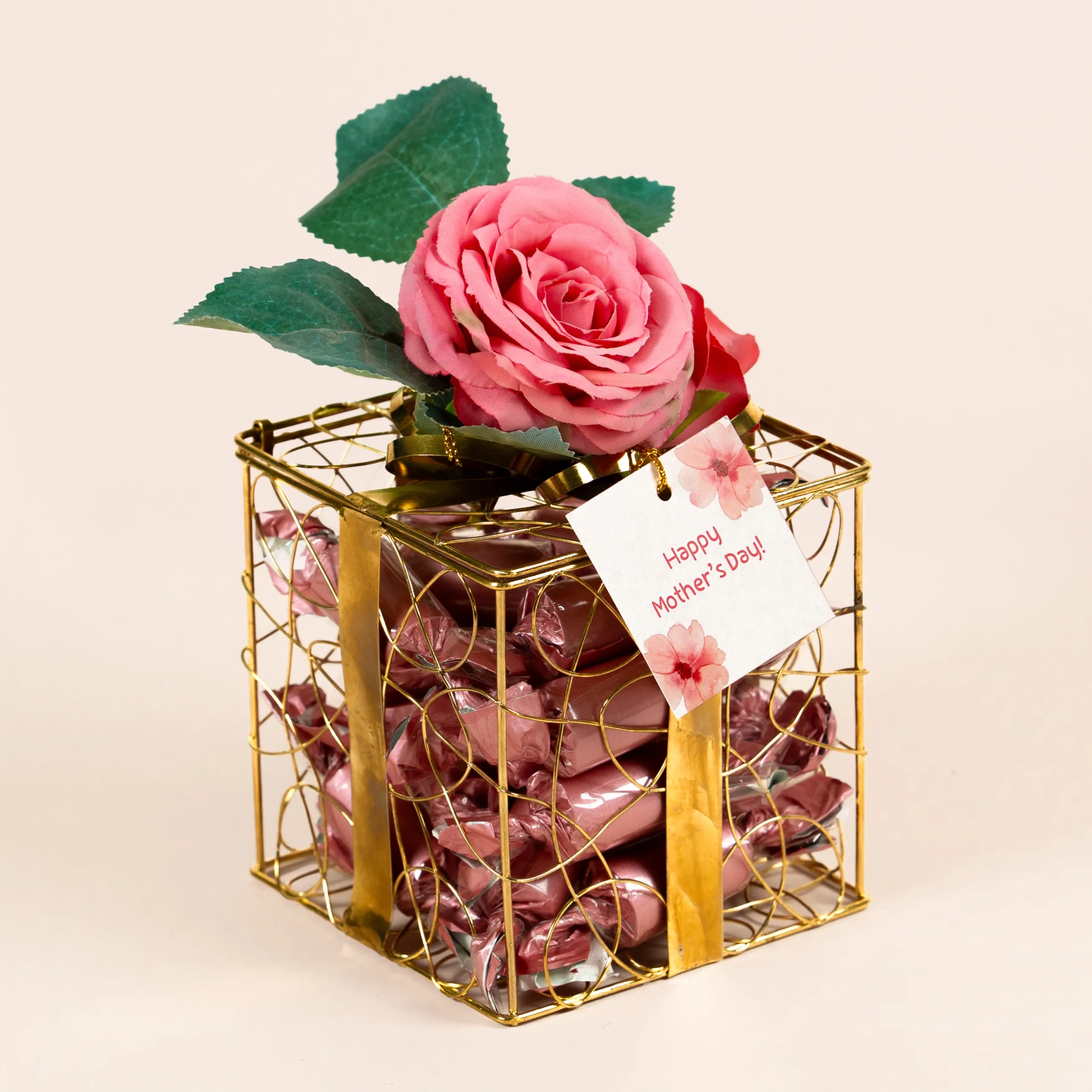 A gift-shaped, metallic box filled with 100% premium Belgian chocolate with crispy crêpes.