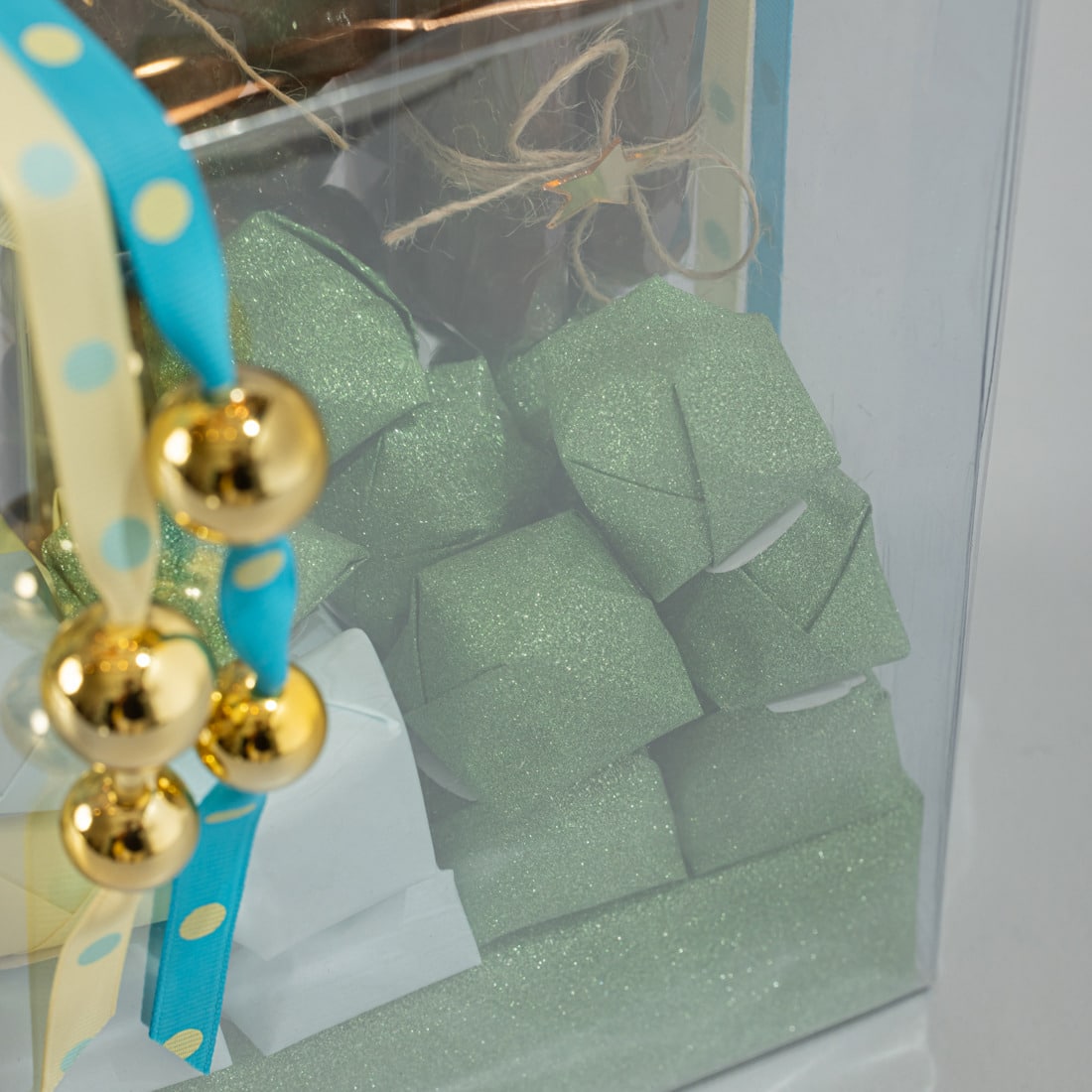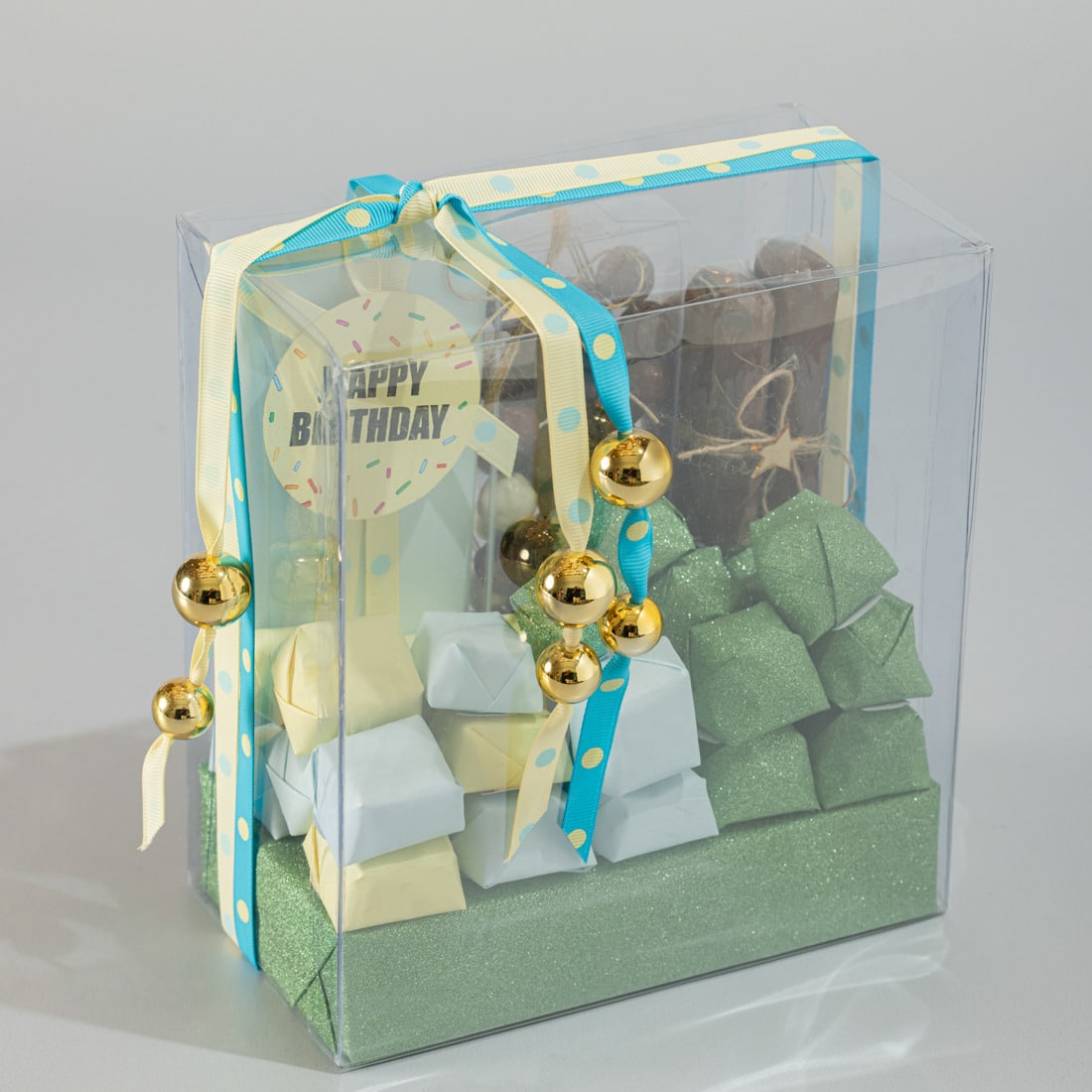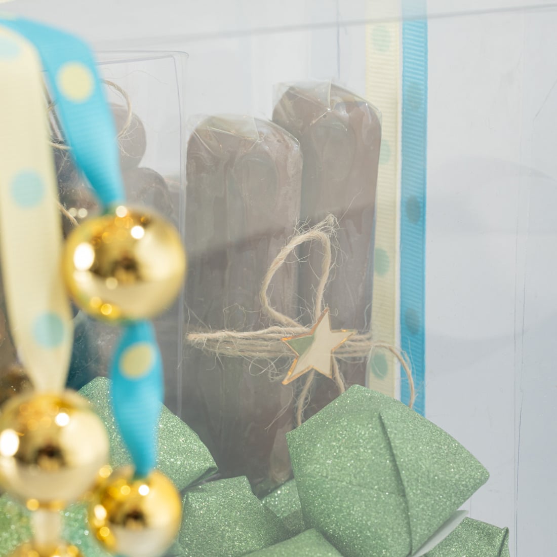 USD70A festive gift box including 380 grams of 100% premium Belgian chocolate. -