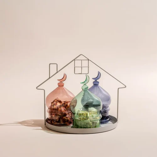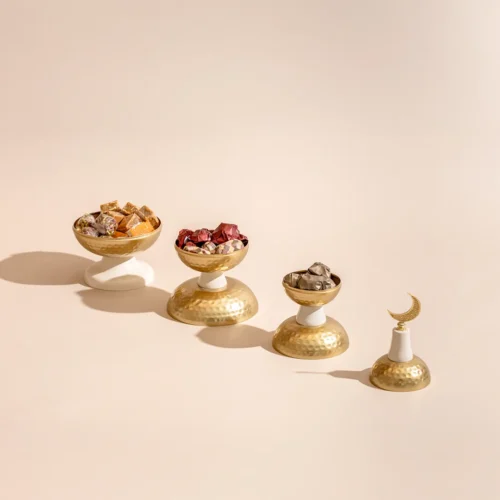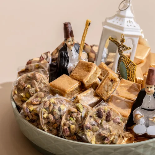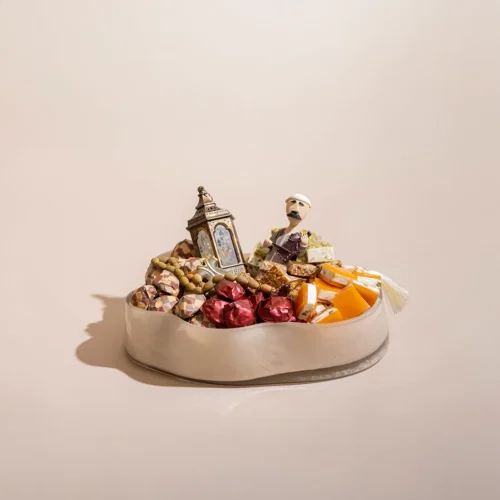 $110 – $160Price range: $110 through $160An opaque glass bowl featuring Ramadan-inspired elements, including a lit lantern, miniature figurines, and worry beads, available in three sizes filled with 0.7 kg, 1.15 kg, and 1.2 kg of assorted premium Belgian chocolates and oriental sweets, respectively. -