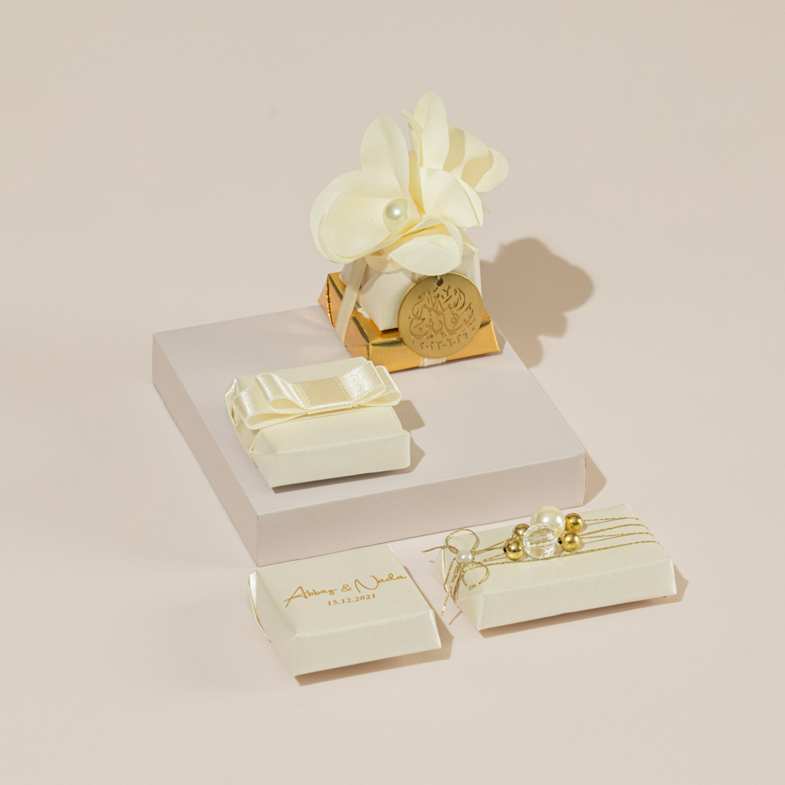 USD12A plexi box topped with the Hand of Fatima, holding printed sugared almonds -