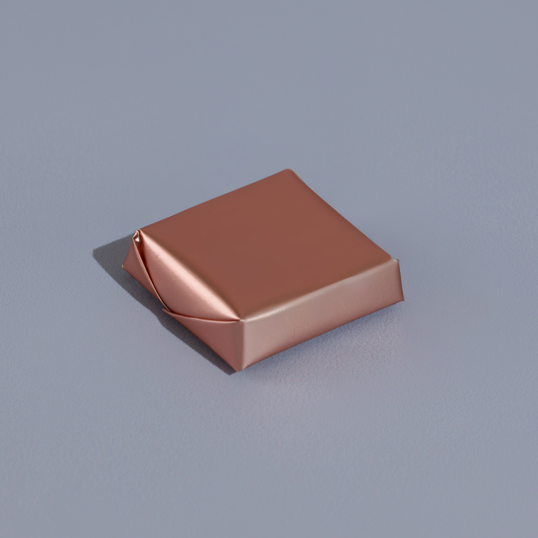 USD10A plexi box topped with a satin rose holding a piece of milk chocolate with lotus ganache and sugared almonds -