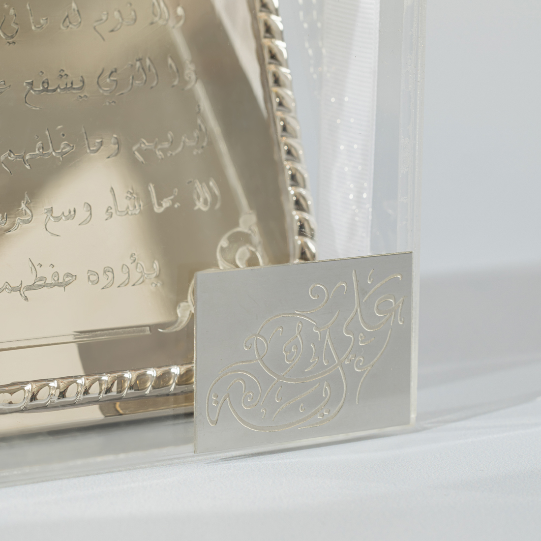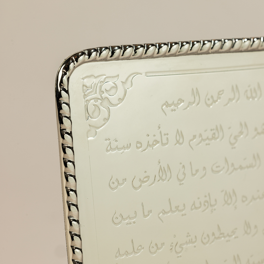 USD80A silver stand, engraved with Ayat Al-Kursi, in a velvet gift box with a custom nameplate.Select options This product has multiple variants. The options may be chosen on the product page Details -