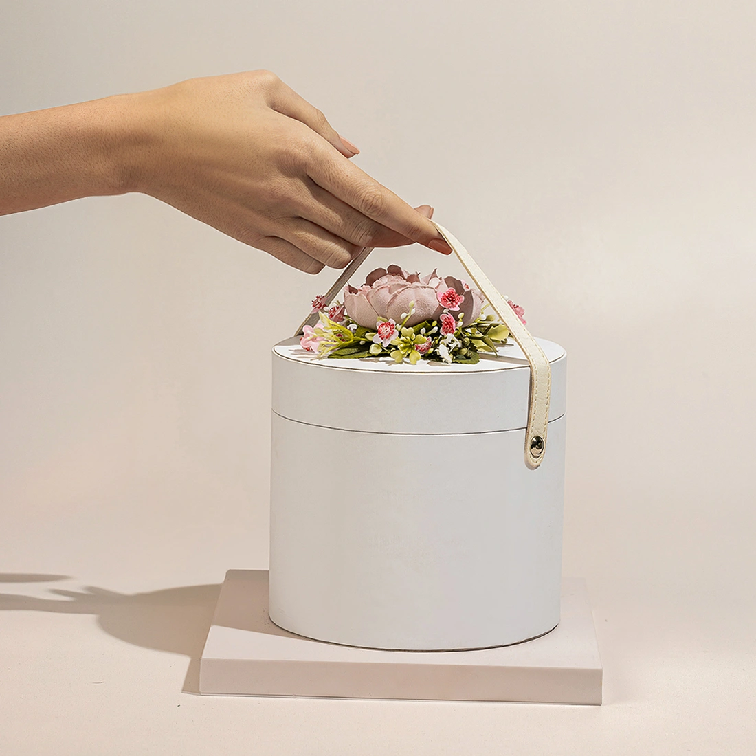 USD50A crystal bonbonniere topped with a ceramic flower, presented in a custom gift box. -