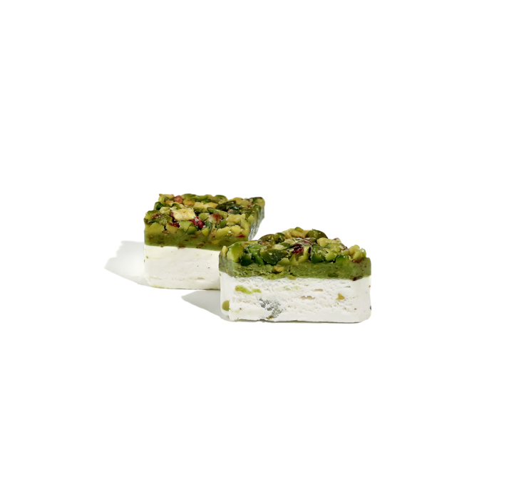 Pistachio and almond nougat with cardamon, topped with crushed pistachios